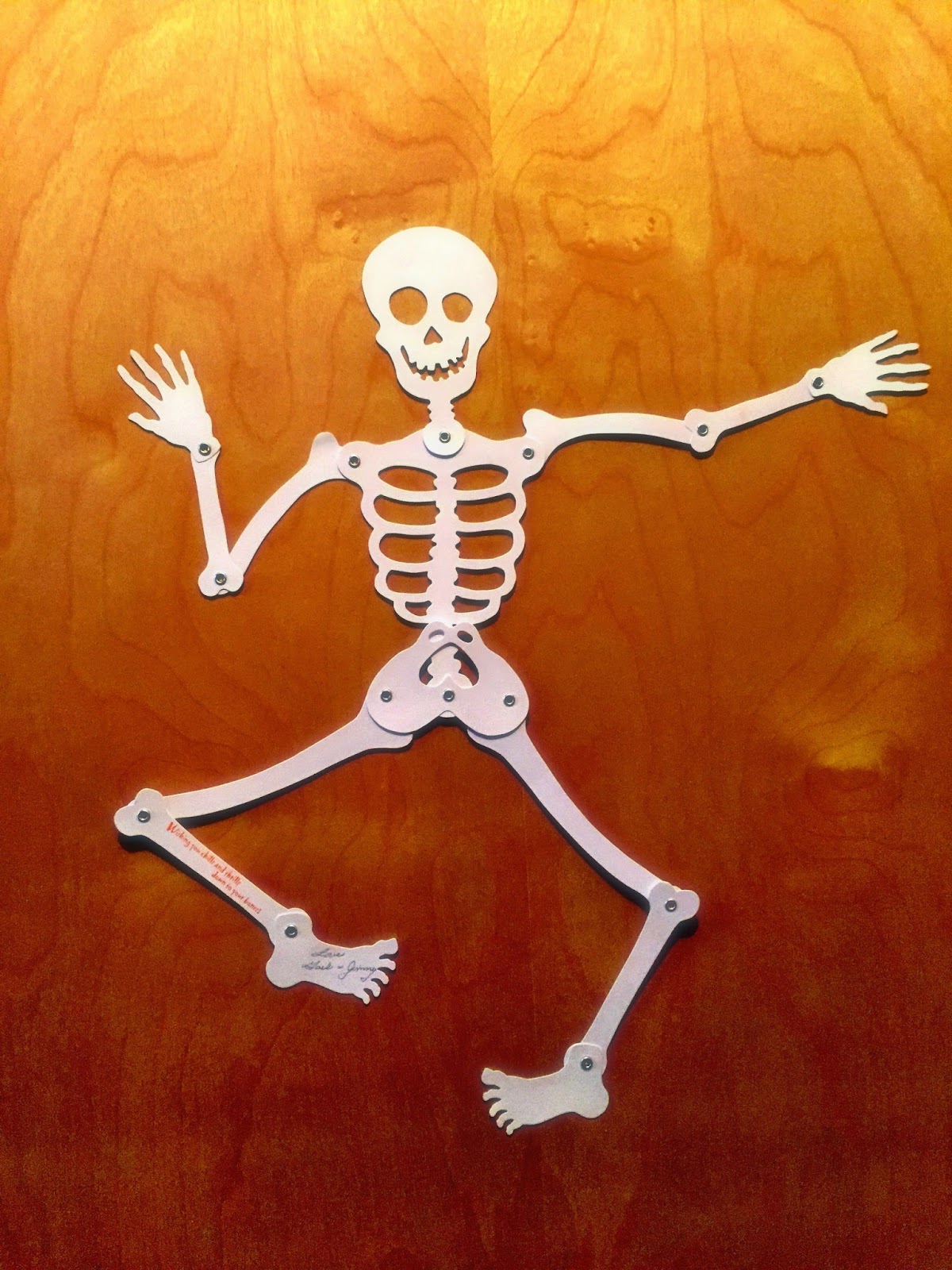 So imagine my surprise when I have only been at my new ‘home’ for a week, and I get a nice orange envelope in the mail. It’s funny because even before I saw the return address written on the back, I knew who it would be from. Ryan’s mum has always been the sweetest lady, and always has the perfect cards and such, for every occasion. I opened it up to find a paper skeleton to hang up for Halloween, signed from his parents. Such a simple thing to send, yet something that made my whole week. I have already hung it on the back of my bedroom door, as a reminder that someone thought enough of me to send me something.