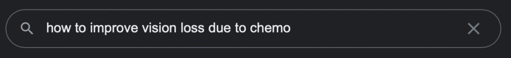 First, glasses would require knowing what prescription I would need. A definable number to say ‘hey this how bad your eyes are’. But my eyes just got worse and worse as treatment went on. So if I had got glasses at the start of the deterioration, I would’ve had to get new ones as they got worse.